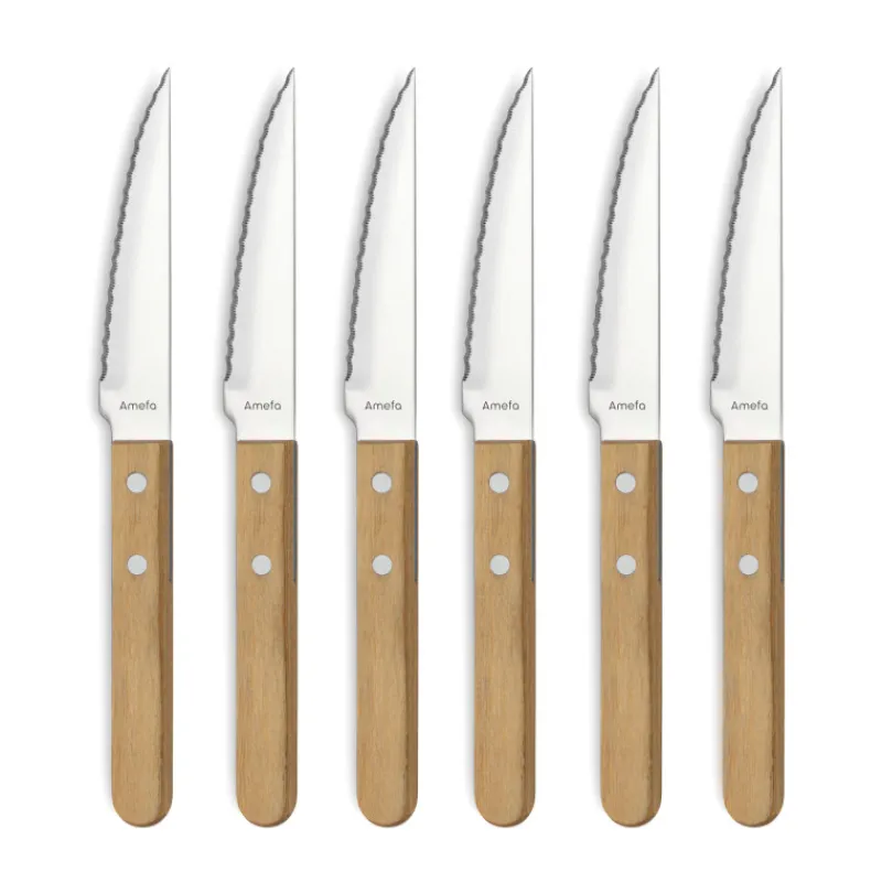 Coffret 6 Couteaux Steak Pizza Bois 21,5 cm Amefa