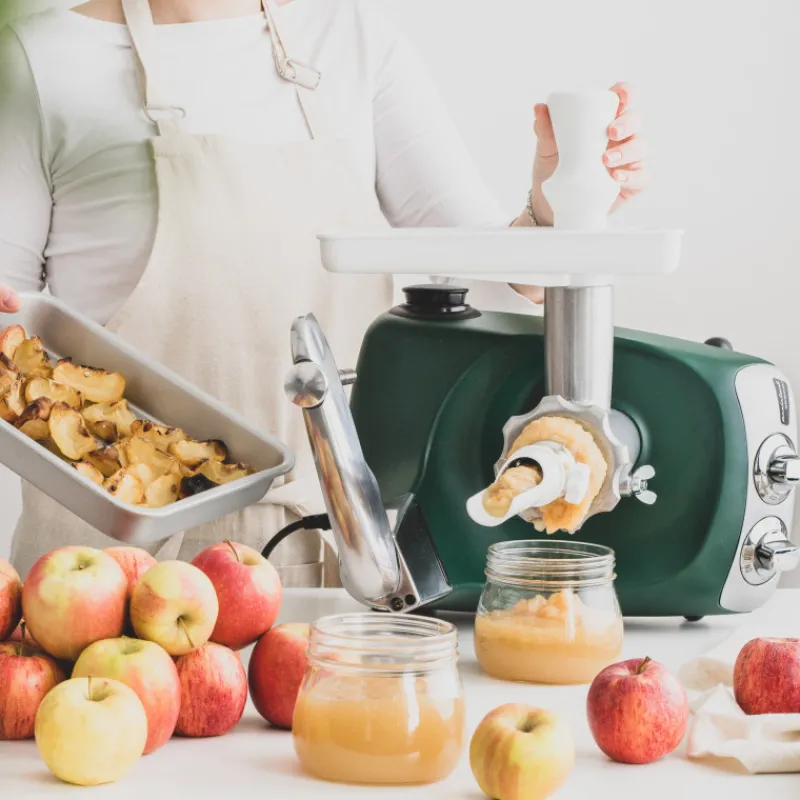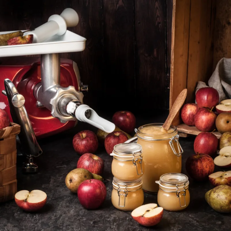 La passoire Ankarsrum se pose sur le hachoir à viande de la même marque. Elle se compose d’une vis sans fin en métal et d’un tamis qui permet de récupérer les pépins.