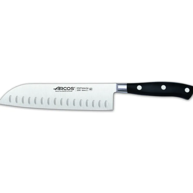 Couteau Santoku alvéolé en inox 18 cm Arcos RIVIERA noir