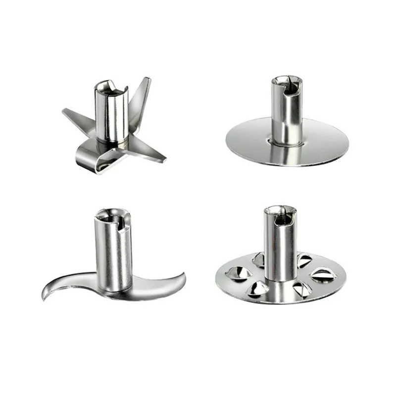 - 4 disques différents : hachoir (pour les viandes, poissons, fruits secs…), fouet (pour blancs en neige, chantilly…), étoile (pour potages, smoothies..) et mélangeur (pour purées, mayonnaises…)