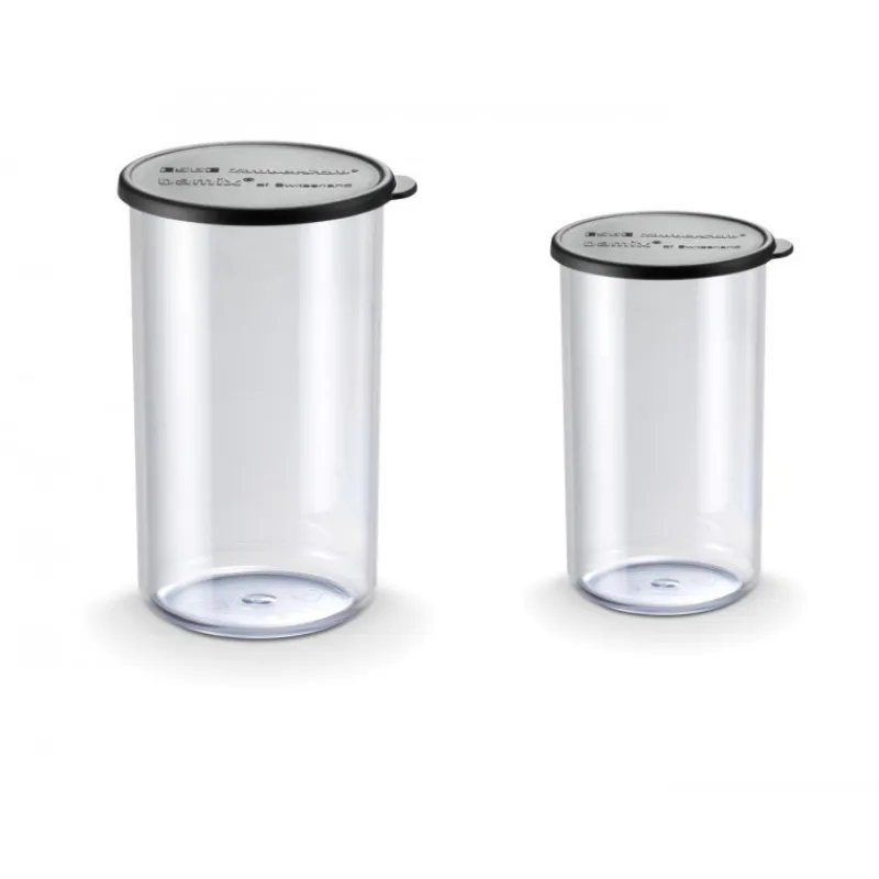Le coffret mixeur plongeant Bamix inclus également 3 gobelets de 400 ml, 600 ml et 1000 ml. Chacun est muni d’un couvercle, ainsi vous pourrez confectionner votre recette et la conserver au frais si nécessaire, sans risque qu’elle se renverse ou s’imprègne des odeurs des autres aliments.