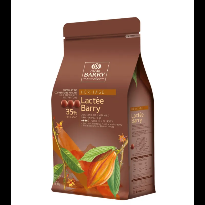 Chocolat de couverture lait en pistoles Lactée Barry 35,3% de cacao 5 kg