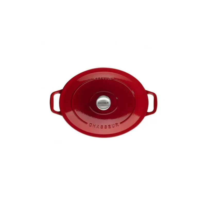 Ajoutez une touche de couleur et de saveurs à votre cuisine avec la cocotte en fonte ovale 29 cm Chasseur. L’émaillage fait main de couleur rubis (rouge) mettra parfaitement en valeur le visuel de vos plats. En ce qui concerne le goût, le couvercle strié assure une excellente distribution de l’humidité et de la chaleur à l’intérieur de la cocotte.