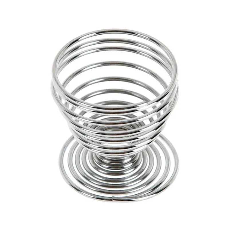 Le coquetier spirale présenté par Combrichon en acier chromé, pour un design élégant et moderne de vos petits déjeuners.