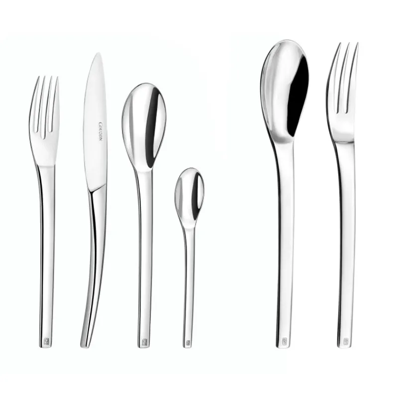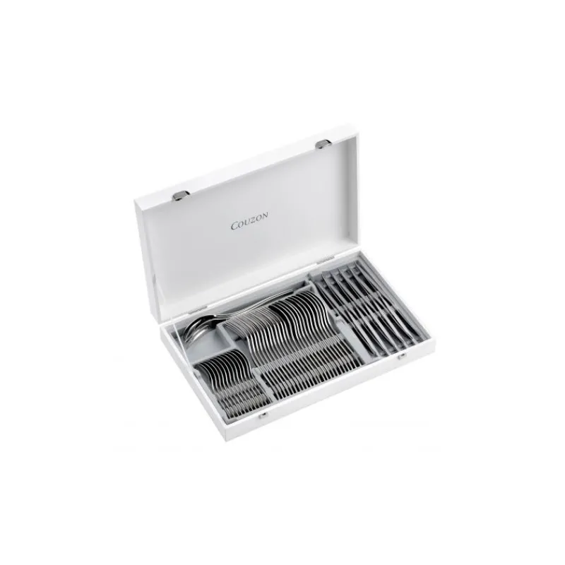 Profitez d’une ménagère Couzon à la fois élégante, sobre et robuste avec ces 50 couverts d’épaisseur 4 mm de la collection Neuvième ART. Grâce à ce coffret en bois contenant 50 pièces, vous aurez tout ce qu’il vous faut pour une table de 12 personnes : fourchettes de table, cuillères de table, couteaux et cuillère à café.