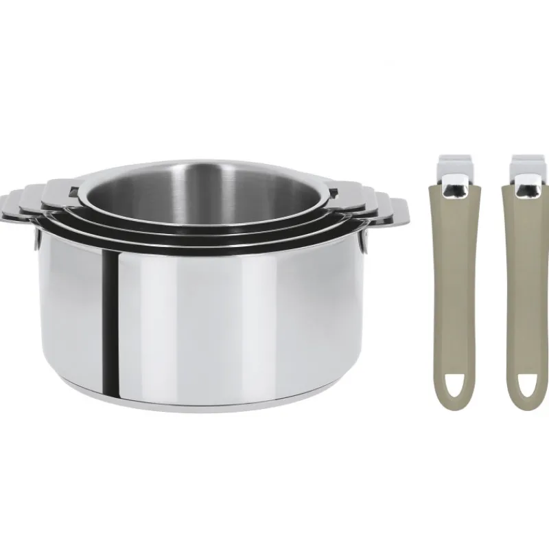 Lot de 4 Casseroles inox avec 2 Poignées Taupe Mutine Amovibles Cristel