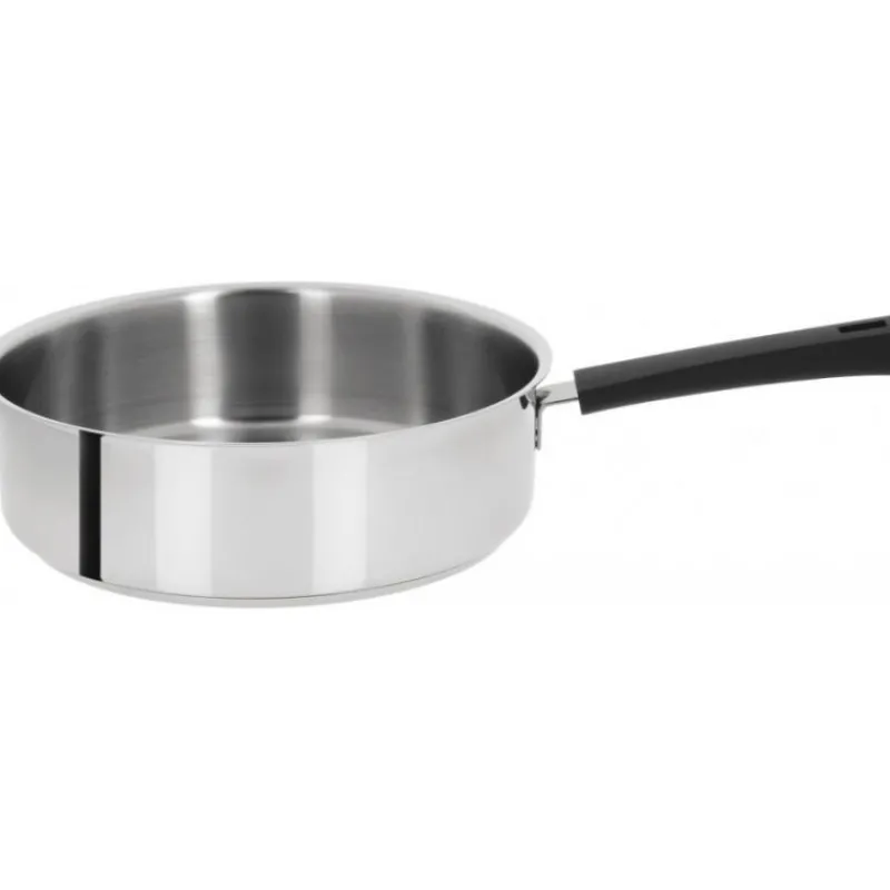 La poignée fixe est soudée à la sauteuse laissant l’intérieur de l’ustensile lisse pour un nettoyage facile.