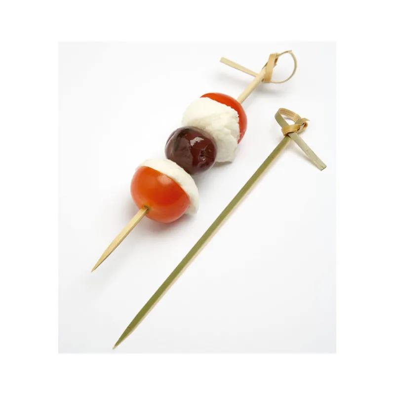Piques Bambou avec bouclePique à forme plate évitant aux produits de tourner. Pique Bambou idéales pour mise en bouch…