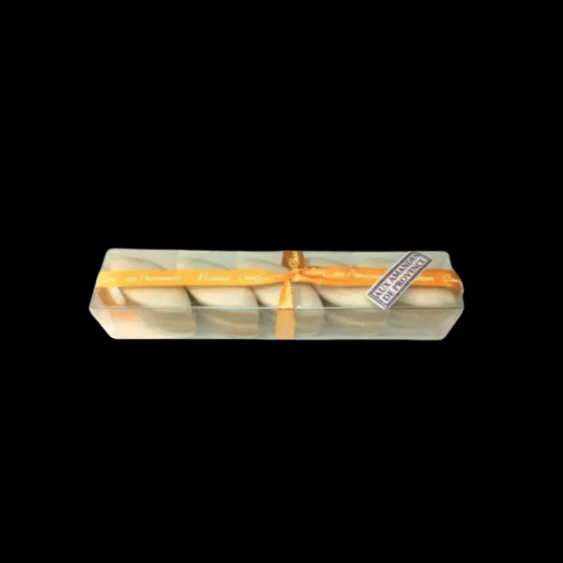 Moelleux et tendres, ces biscuits calissons épateront vos palais avec le savoureux mélange d’amandes de Provence, de sucre et de melon confit. Fabriqués en France, ces calissons en forme d’amande sont une spécialité provençale réhaussée d’un zeste d’écorces d’orange confite.