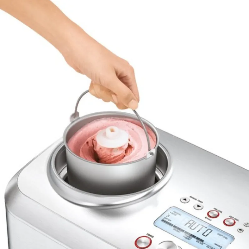 Préparer des glaces maison ou des desserts glacés devient un jeu d’enfant à l’aide de la Turbine à Glace Smart Scoop Sage. La Turbine à Glace est munie de 12 réglages de densité, cette fonction vous assure des glaces et des préparations glacées à la texture toujours parfaite. Vous pourrez réaliser entre autres : sorbet, yaourt glacé, glace italienne ou crème glacée.