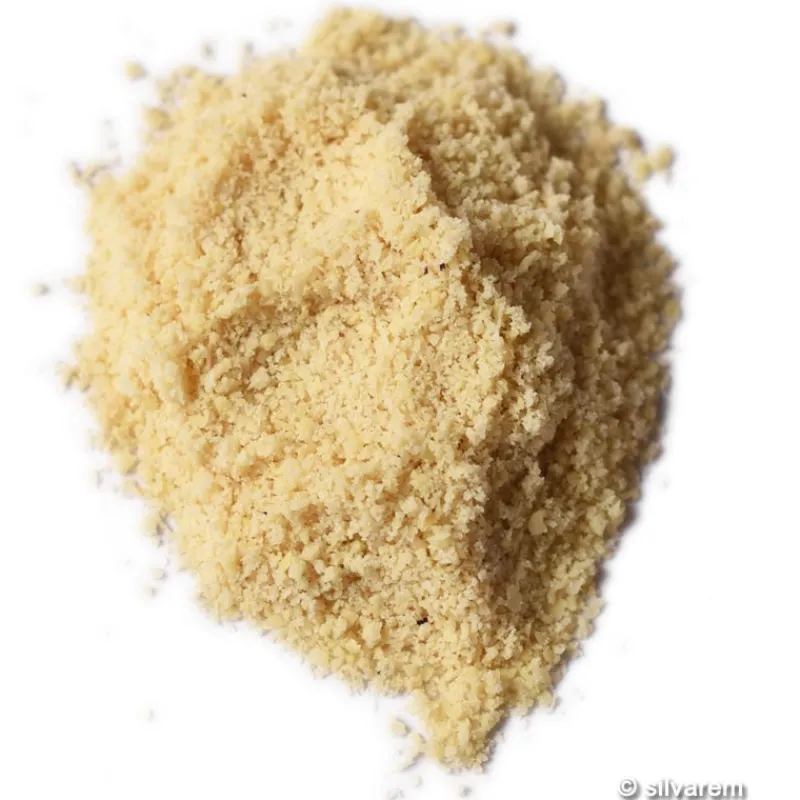 La poudre d’amande pourra également être mélangée à de la farine, du parmesan ou de la chapelure pour des recettes salées (saumon pané de chapelure d’amande, crumbles, pâte à tarte salée etc.).