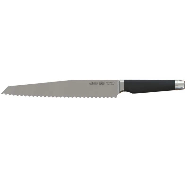 Le long couteau à pain de De Buyer possède une lame crantée de 26 cm pour couper le pain avec le moins d’effort possible, même le pain dur ou rassis. Ses crans donne plus d’adhésion au couteau lors de la découpe et permet plus de précision.
