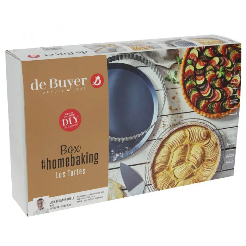 Confectionnez des tartes sucrées ou salées toujours réussies à l’aide de ce coffret #HomeBaking Tarte de Buyer. Spécialement conçu pour les amateurs comme pour les pâtissiers chevronnés ce coffret pâtisserie est composé d’un cercle à tarte perforé, d’une tourtière, d’une grille (volette) et d’une pelle de service.