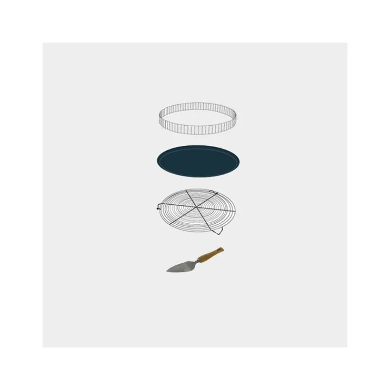 - Contenu du coffret : 1 cercle à tarte 24 cm + 1 tourtière 28 cm + 1 grille 28 cm + 1 spatule de service