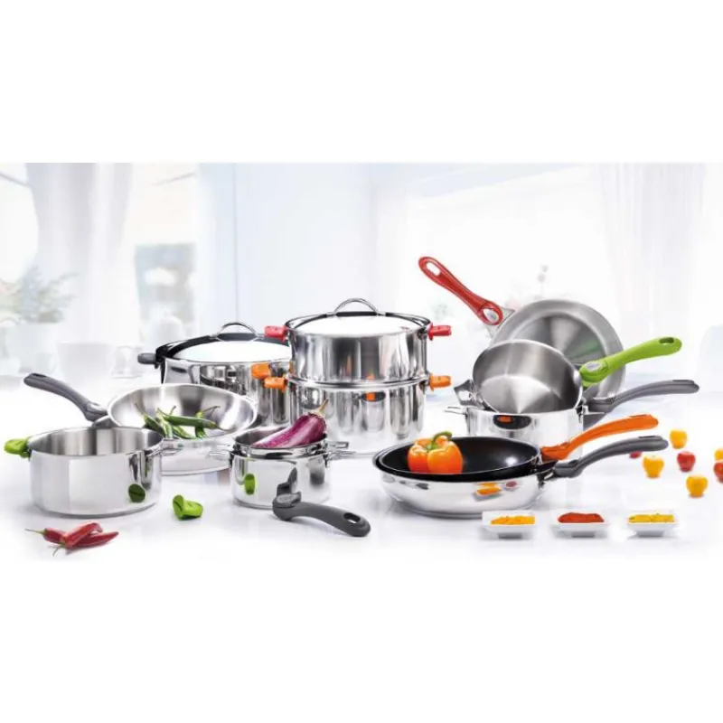 De Buyer, marque française de renommée, a répondu au désir des particuliers rêvant d’une batterie de cuisine de grande qualité mais ne possédant pas de place suffisante dans leur cuisine. Avec son manche amovible au toucher velours, De Buyer vous offre praticité et esthétisme pour toutes vos poêles et casseroles.