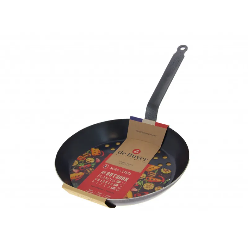 FIN DE SERIE Poêle à Légumes Perforée Tôle Bleue Ø 28 cm Outdoor De Buyer