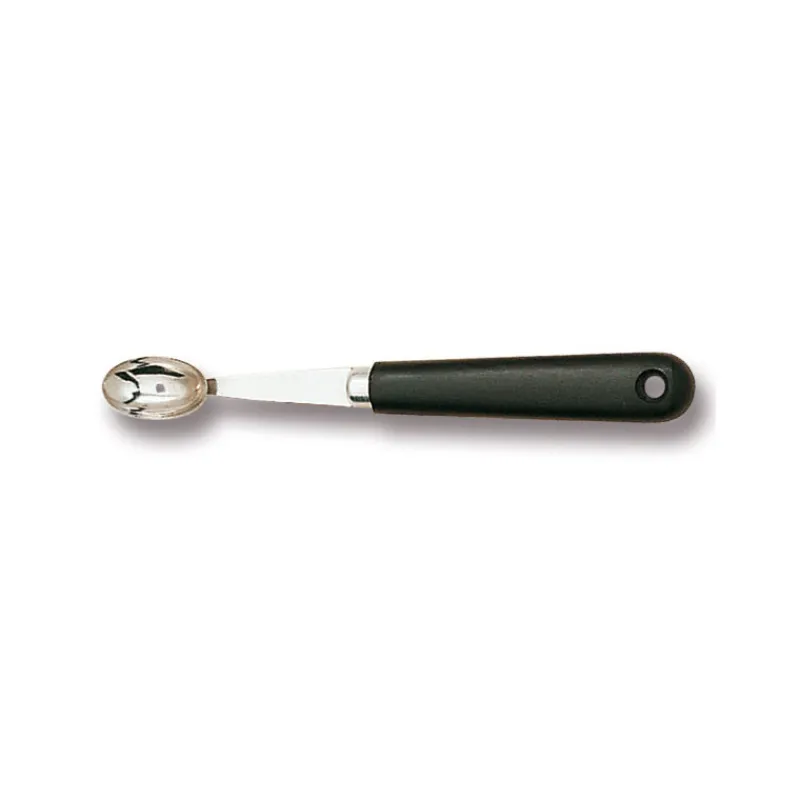 La Cuillère à Pomme, également appelée boule parisienne, vous permettra de creuser pommes, melons, navets, avocat et plein d’autres fruits et légumes très facilement. La forme ovale de cette cuillère parisienne permet de réaliser des formes inattendues pour une présentation personnalisée.