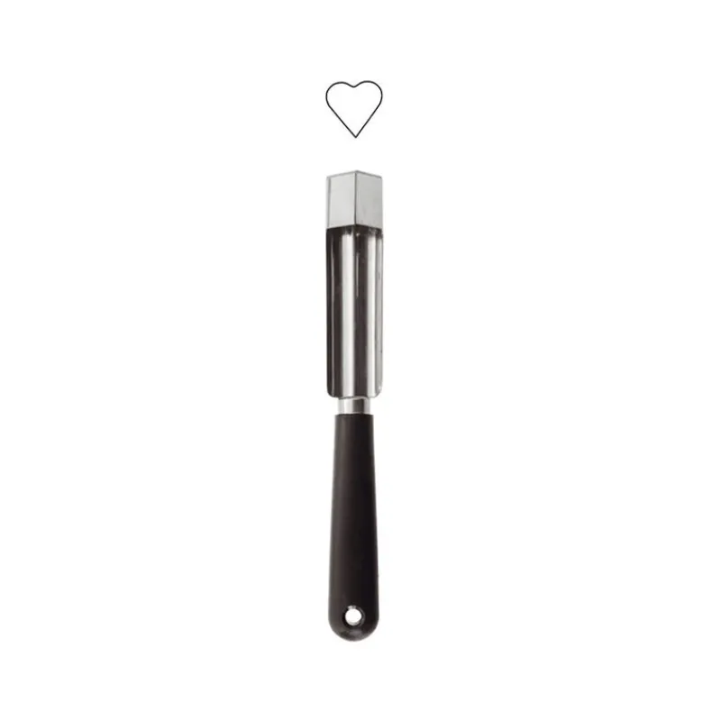 L’emporte Coeur permet de creuser des fruits et légumes pour obtenir une forme de coeur. L’emporte coeur peut également être utilisé sur des pâtes ou gâteaux.