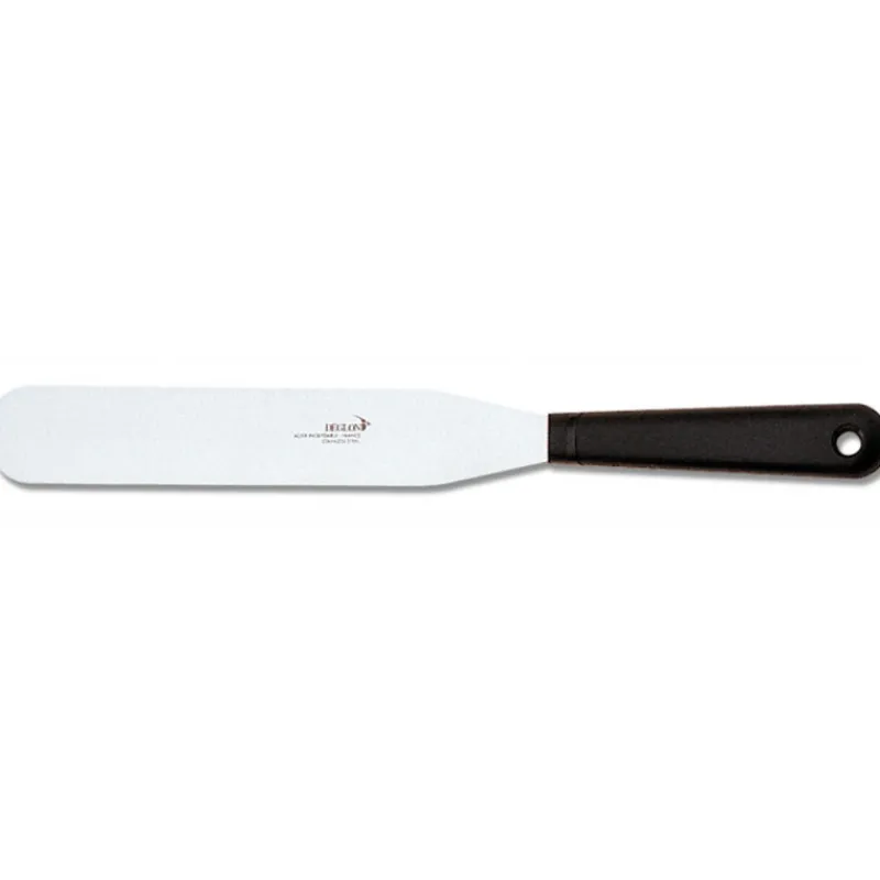 La spatule inox plate Déglon est disponible en 12 cm, 15 cm, 18 cm, 21 cm, 23 cm, 25 cm, 30 cm et 40 cm.