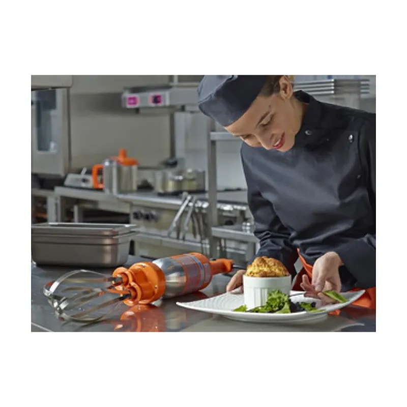 Le mixeur plongeant fouet Senior Combi 300 Dynamic se pare d’une double isolation. Le tube de plongée, la cloche et les fouets éjectables sont faits d’acier inoxydable. Les éléments détachables se manipulent facilement, pour un entretien simple et rapide.