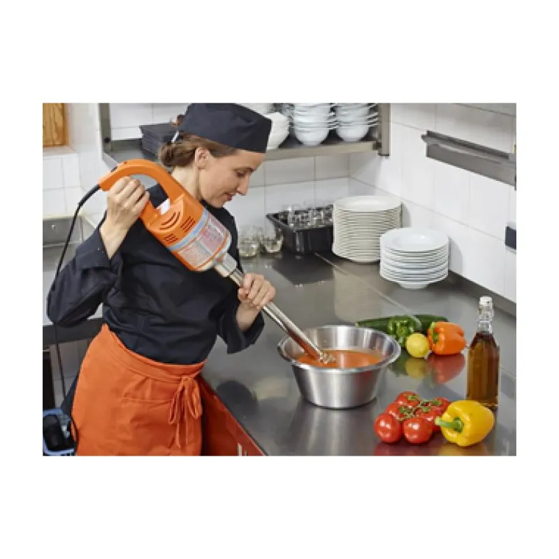 Le mixeur plongeant professionnel Master DMX410.H Dynamic dispose d’une ventilation haute afin que le moteur puisse refroidir facilement. Le tube de plongée et la cloche sont en inox alimentaire, pour un respect de l’hygiène.
