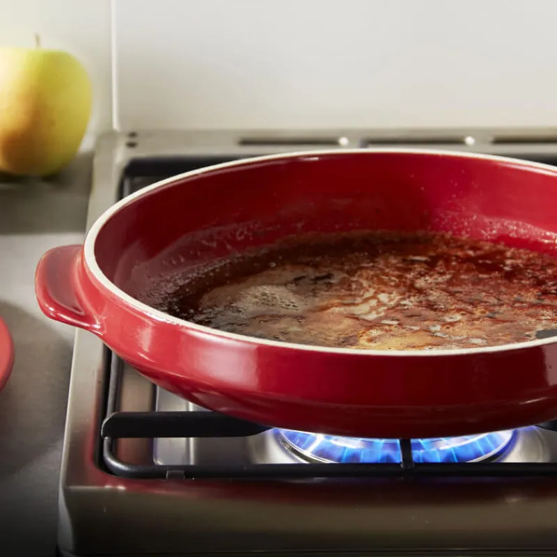 Ainsi, pour réaliser le caramel qui viendra enrober les pommes, utilisez ce moule Emile Henry directement sur le feu. La céramique est compatible avec l’utilisation du gaz mais aussi avec des plaques vitrocéramiques, halogènes et électriques.