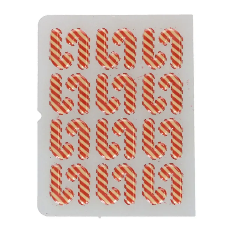 Ce lot se compose de 24 décors identiques en chocolat blanc ornés de bandes rouges pour rappeler la canne à sucre de Noël. Le goût sucré et réconfortant du chocolat blanc associé à sa finesse et son croquant, font de ces éléments en chocolats les décors Noël parfaits.