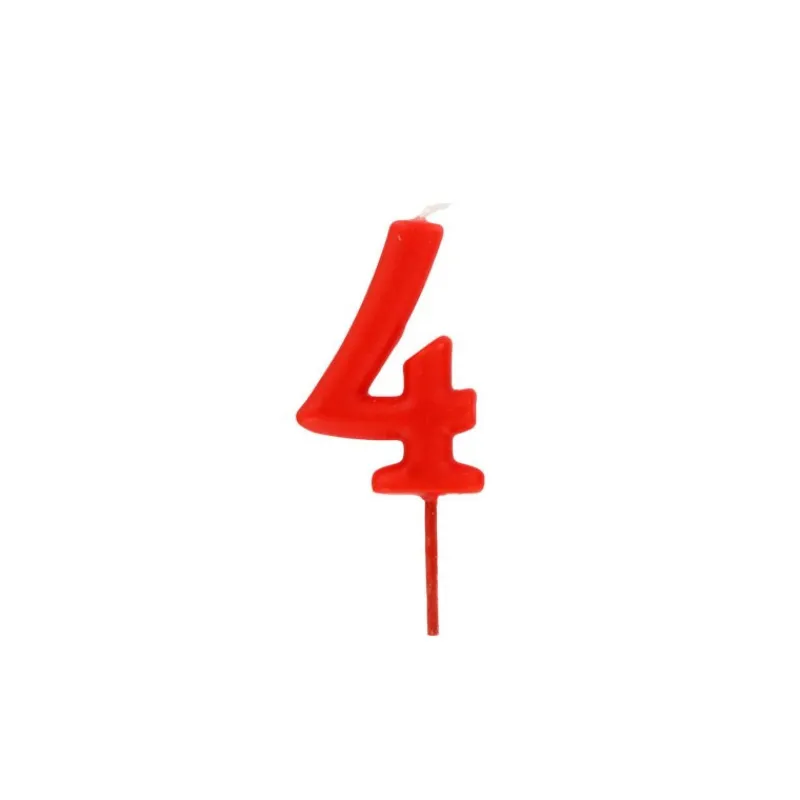 Faites une belle surprise à la personne qui soufflera ses bougies avec la Bougie Chiffre 4 Rouge Gatodéco.