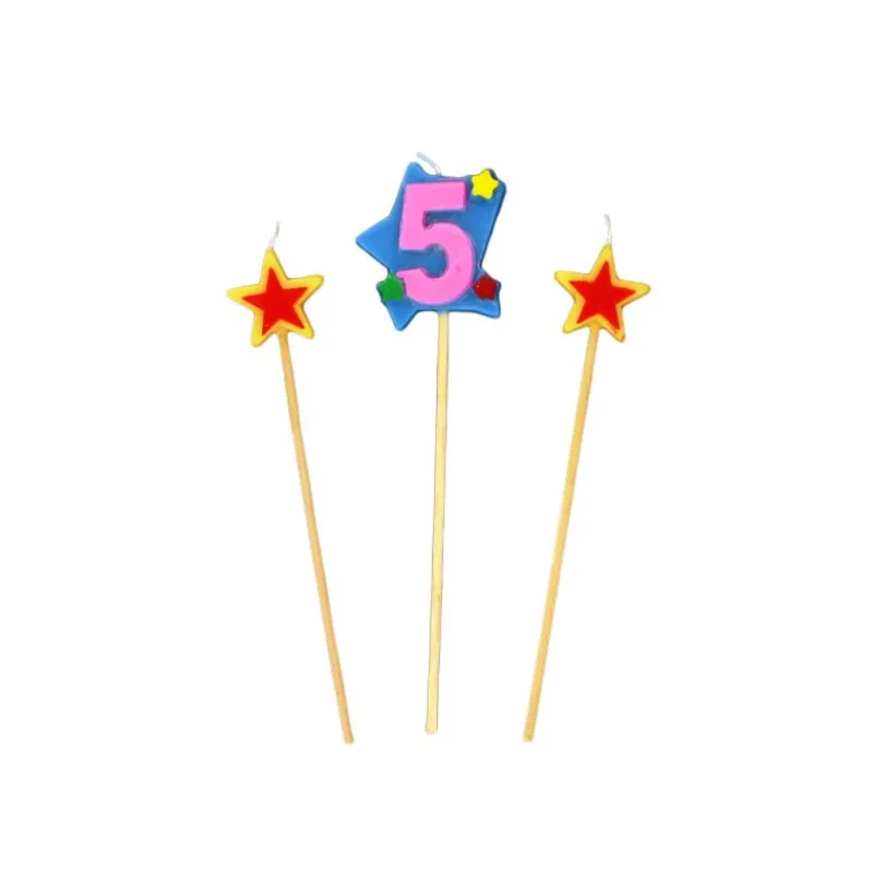 - Conditionnement : Lot de 3 Bougies (1 Chiffre + 2 Étoiles)