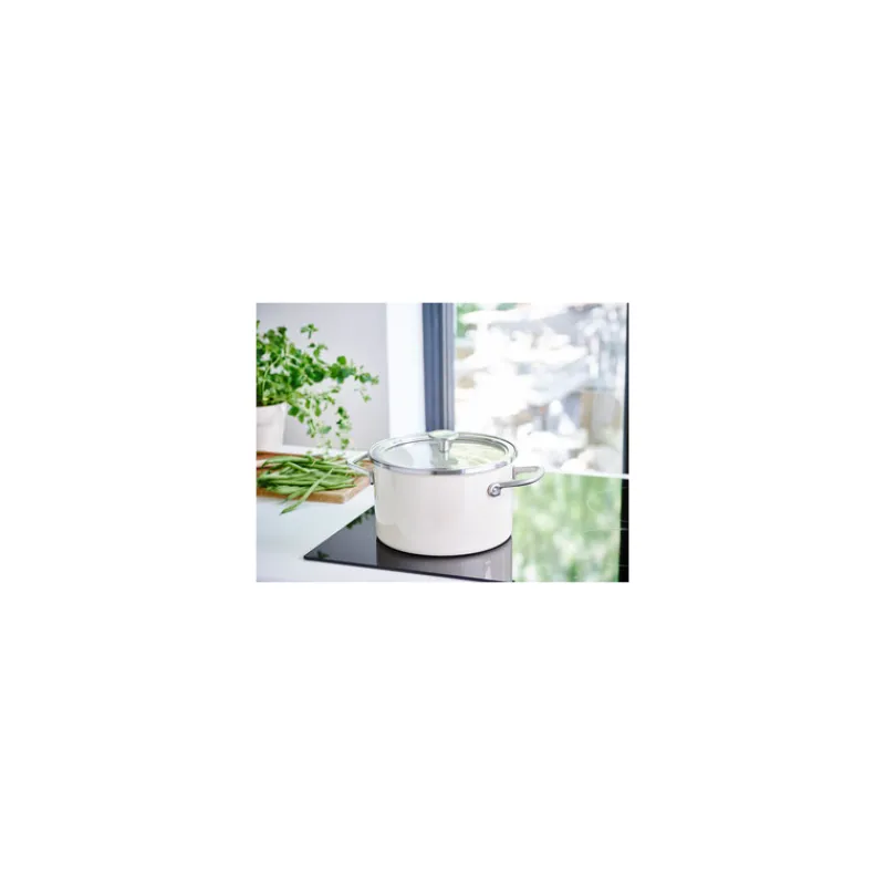Utilisable sur tous feux dont induction et four (jusqu’à 220°C), le faitout émaillé 20cm est accompagné de son couvercle en verre trempé, donnant la possibilité de contrôler la cuisson à tout moment. D’une élégante couleur Crème, le faitout KitchenAid saura parfaitement s’intégrer dans votre cuisine. Les poignées rivetées en inox et son système anti-gouttes font du faitout en émail 20cm un partenaire de confiance au fil des recettes et des années. Léger et polyvalent, le faitout émaillé KitchenAid vous accompagnera dans toutes vos pérégrinations culinaires !