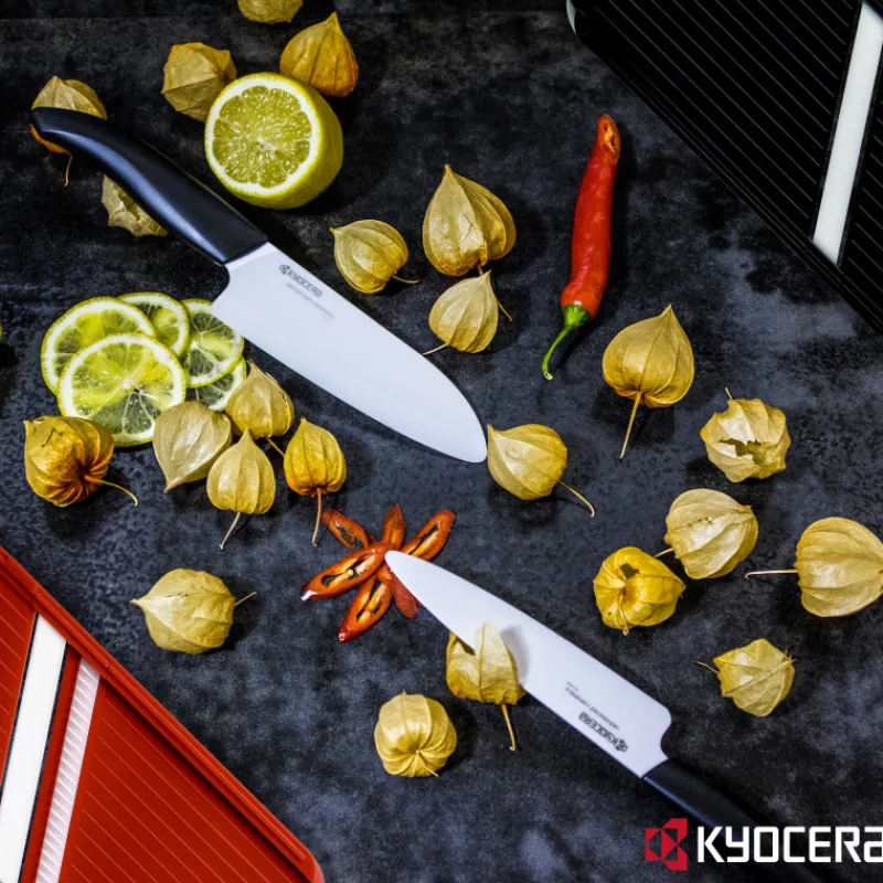 Vous cherchez le cadeau idéal pour la fête des pères, Noël ou un anniversaire ? Si cette personne aime cuisiner, elle adorera ce Coffret de Couteaux Céramique. S’inspirant du savoir-faire japonais, Kyocera taille la lame de ses Couteaux en Céramique à la main. Afin de posséder une longue durée de vie, les Couteaux Kyocera sont fait en céramique de zircone, un matériau réputé pour sa résistance.
