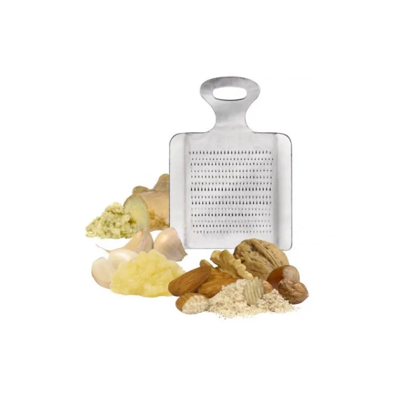 La râpe grattoir en Inox, avec ses multiples picots acérés, présenté par Tellier vous permettra de réduire en miettes les fruits secs, à coques et les racines fibreuses comme le wasabi, l’ail ou encore le gingembre.