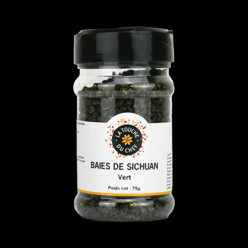 A court de Baies du Sichuan ? Avec ce pot de 75 g de Baies vertes vous aurez de quoi recharger votre moulin à poivre. Aussi appelées Poivre vert de Sichuan, ce dernier est très aromatisé et laissera un goût citronné en bouche.
