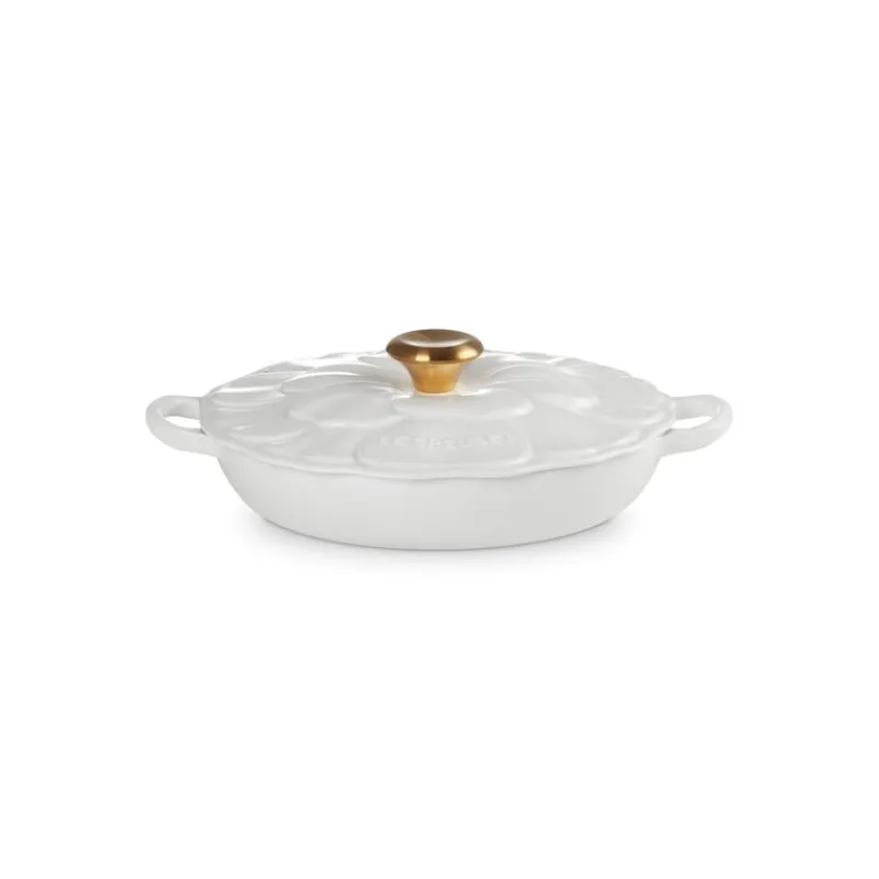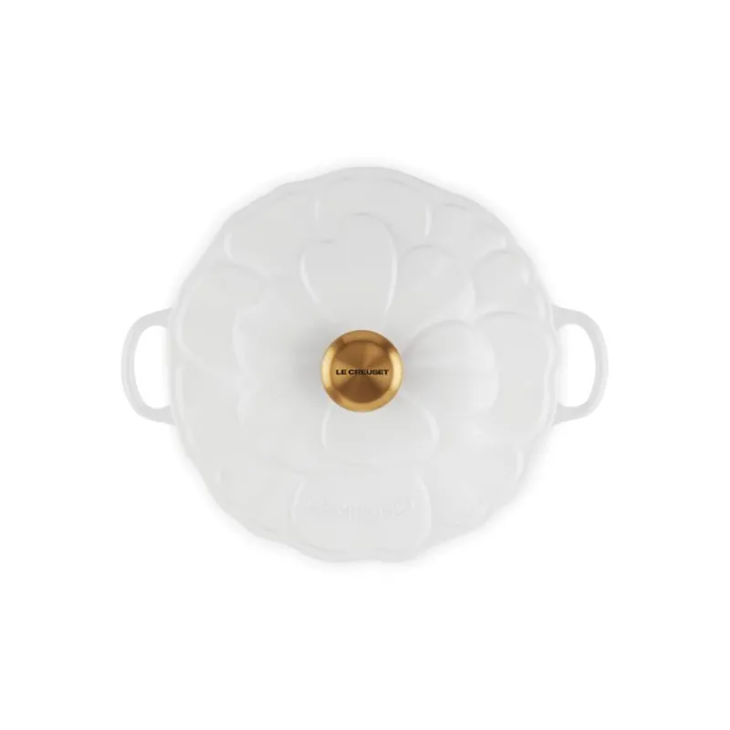 Faitout Fonte Émaillée Pétales Blanc avec Bouton Doré 26 cm Le Creuset