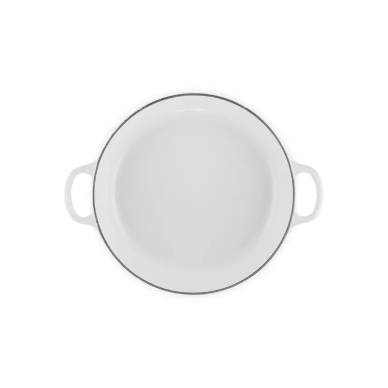 Compatible tous feux et jusqu’à 260°C, ce faitout cuisine vous accompagne dans toutes vos créations. Conçu en fonte émaillée, marque de fabrique de Le Creuset, ce faitout blanc dispose d’un bouton doré en inox ainsi que d’un fond ultra-lisse qui facilite le nettoyage. La couleur blanche éclatante de ce faitout Le Creuset, associée à un intérieur sable, illumine vos plats tout en apportant une touche de sophistication à votre table.