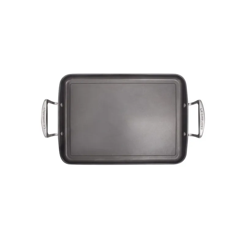 La Plancha géante fonte 34 x 25 cm Le Creuset sera votre plat idéal. Parfaitement adapté aux cuissons des aliments délicats tels que poissons, viandes et légumes d’été, cette plancha de grande taille saisit les aliments sans ajout de graisse. Le plat est utilisable sur tous les feux (sauf barbecue).