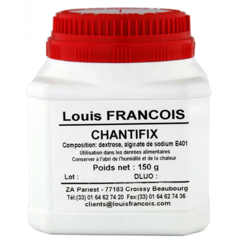 L’additif alimentaire Chantifix Louis François se présente sous forme de pot refermable de 150 g. Le dosage recommandé est de 20 g pour 1 kilo de crème fouettée.