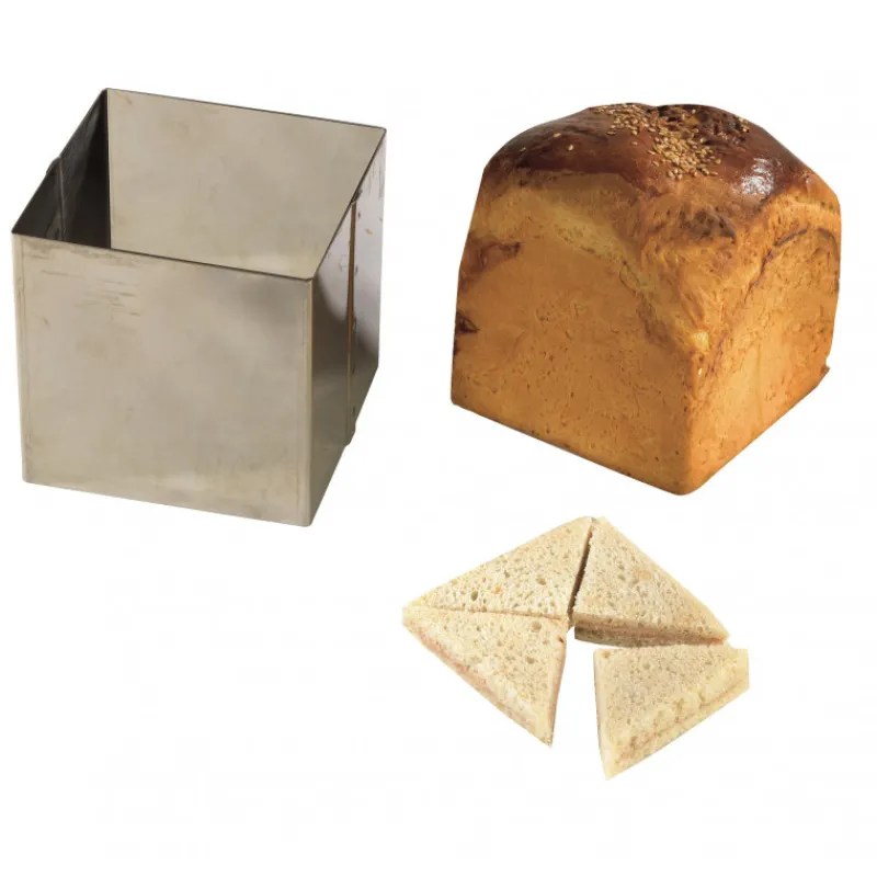 Fabriqué en France, ce cercle en inox vous garantit un usage simple ainsi qu’une excellente résistance aux chocs. Le cercle à pain de 14 cm de côté et de haut vous permet la réalisation d’environ 32 sandwichs garnis comme il vous plaira. Vous pourrez directement préparer et lever votre pâte à pain dans le cercle carré.