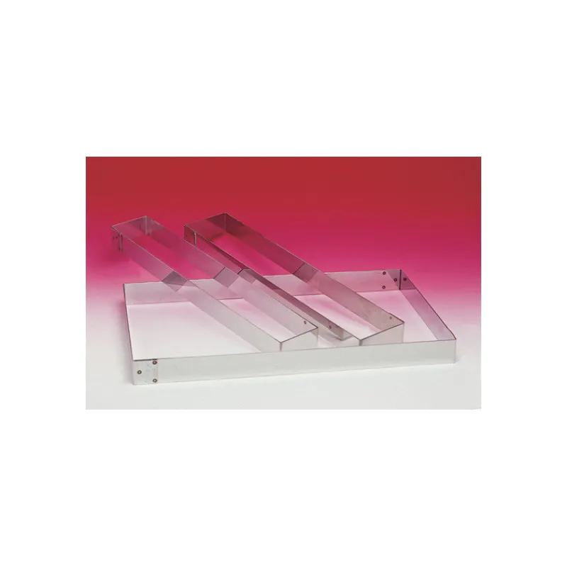 Vous avez un repas de famille en prévision ou un événement avec votre club de sport et vous êtes chargé de réaliser un plat à partager? Équipez-vous en conséquence avec un cadre à pâtisserie sans fond. Plus simple pour réaliser le montage et le démoulage de vos entremets, tartes salées ou tartes sucrées, le cadre pâtisserie inox vous permet de réaliser des plats nécessitant un passage au four ou au frais. Vous pouvez notamment réaliser la cuisson d’un biscuit dacquoise dans le cadre à pâtisserie rectangulaire puis ensuite pocher une crème dessus et le placer au réfrigérateur. Spécificité du Rectangle Inox sans Fond 9 x 57 cm H.2,5 cm, il est tout en longueur. Vous pourrez ainsi réaliser une tarte salée de 57 cm de longueur qui sera simple à diviser.
