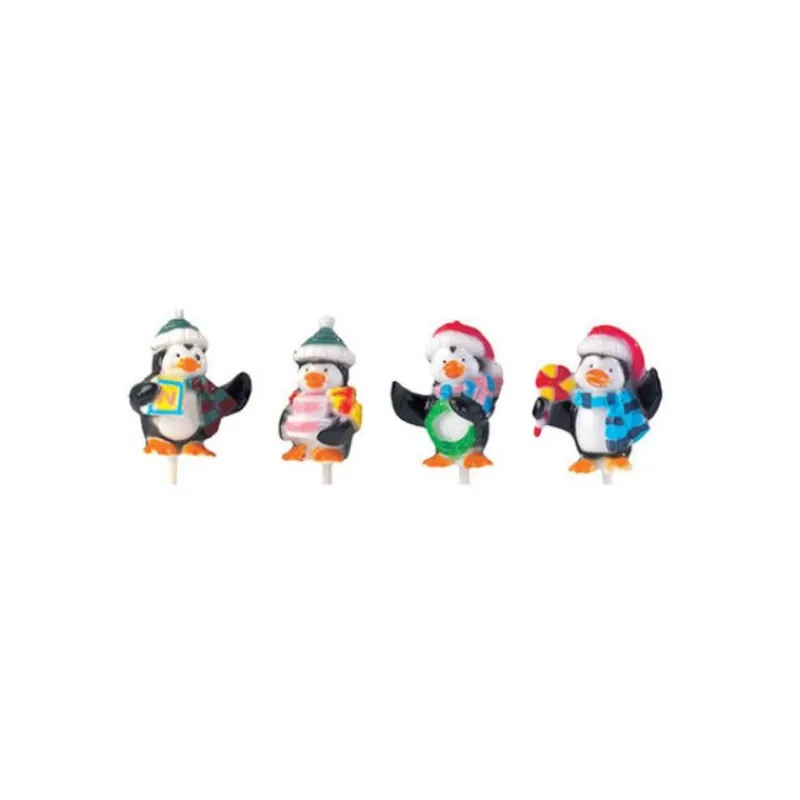 Variez vos décorations de bûche de Noël ou de vos gâteaux de fêtes avec cette bande de pingouins sur pique.
