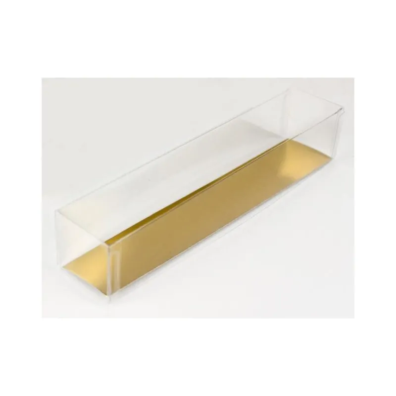 Mettez en valeur vos macarons dans une boîte à macaron prête à offrir ou à trôner en vitrine. Les macarons prendront place au sein de la boîte à macaron sur un fond en carton doré. Le couvercle de l’emballage macaron est en PVC entièrement transparent, vos macarons sont ainsi visibles tout en étant protégés. Cette boîte 9 macarons est d’une longueur de 24 cm ce qui vous laissera la place d’y glisser 9 à 10 macarons (en fonction de la taille de vos macarons).