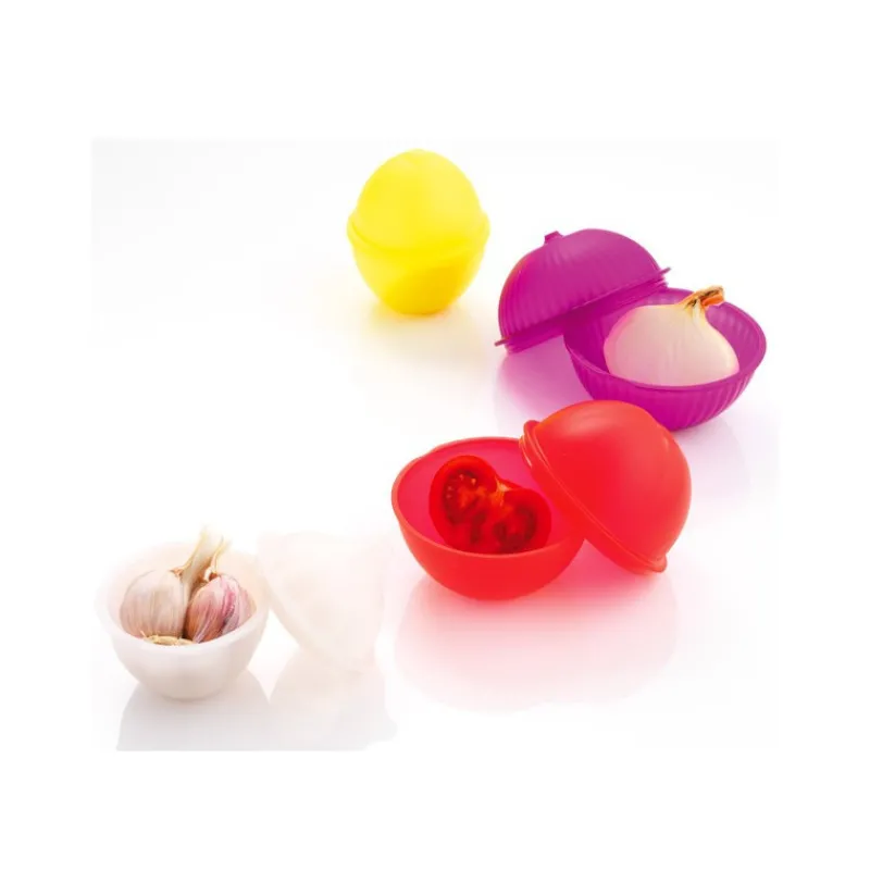 Conserver plus longtemps vos fruits et légumes entamés avec ces 4 boites de conservations colorées ! Ail, citron, oignons tomates… Vos aliments entamés seront à l’abris.