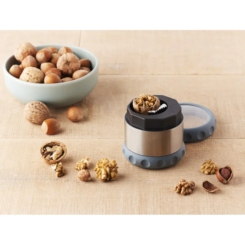 Pour une meilleure prise en main, la base et le couvercle du casse-noix sont crantés et possèdent un toucher soft. Son système mécanique métallique permet au casse-noisette de procéder progressivement, pour ne pas risquer d’abîmer la noix ou la noisette. Lors de l’opération, tous les éclats de coquille restent emprisonnés dans l’ustensile garantissant ainsi une propreté à toute épreuve. Pour couronner le tout, le casse-noix mécanique Mastrad est compatible au lave-vaisselle. Qui dit mieux ?
