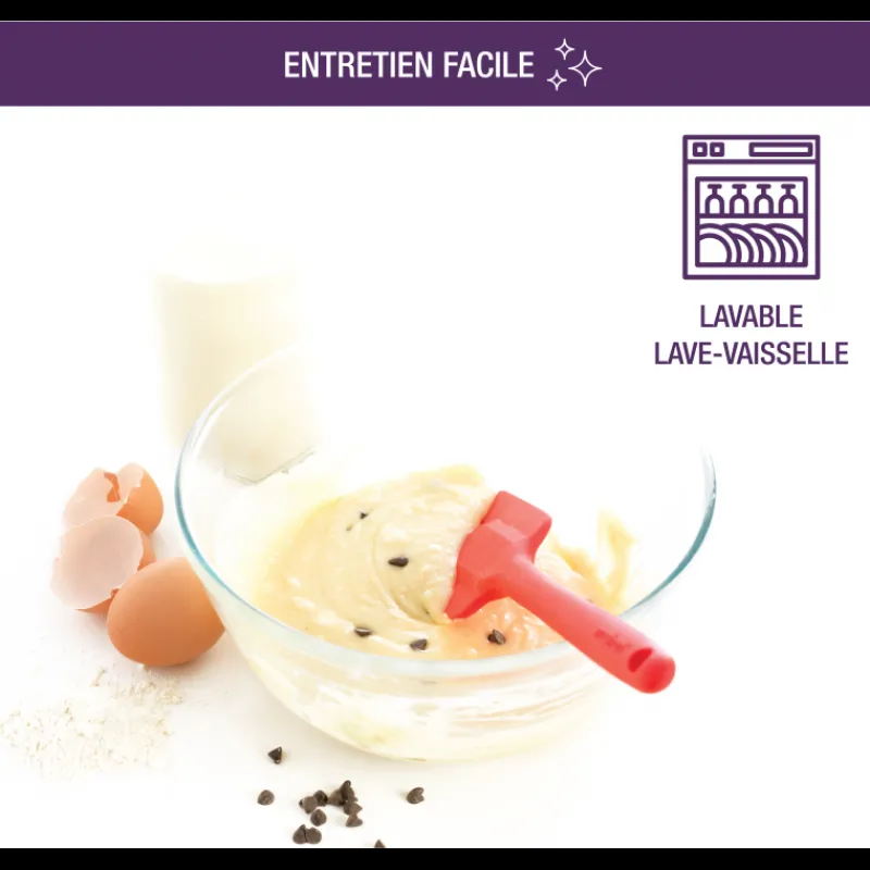 - Spatule en silicone, elles empêchent l’accumulation de bactéries entre la tête et le manche.