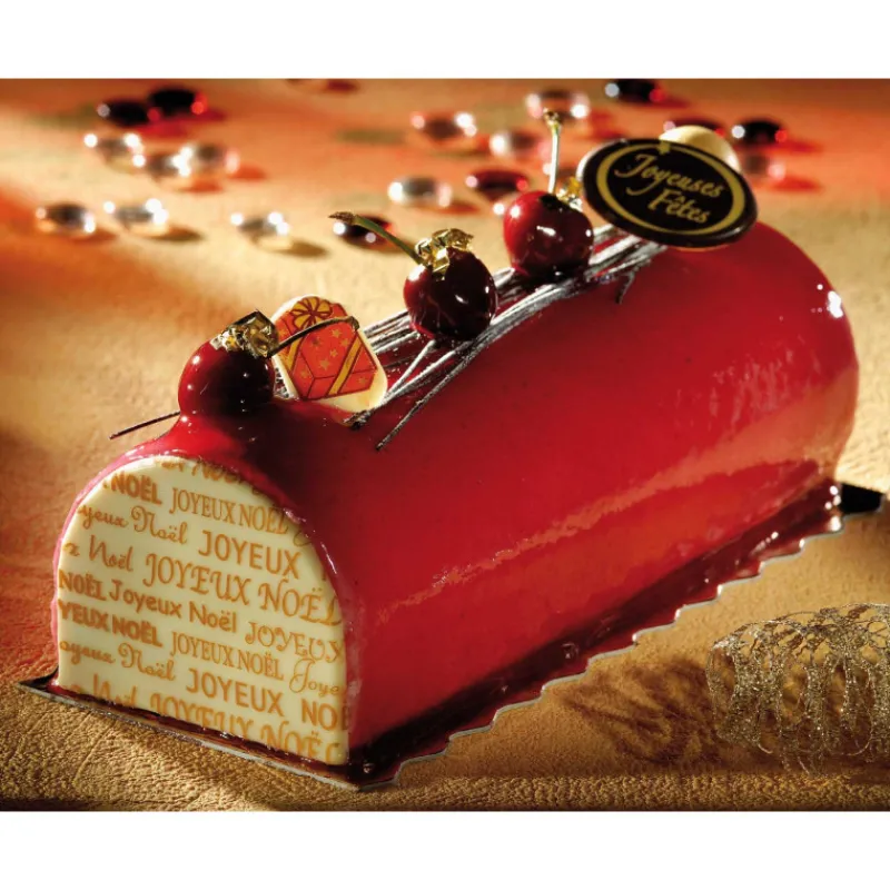 Pour une décoration 100% réussie : utilisez des Moules à Embout de bûche pour réaliser des embouts en chocolat à disposer aux extrémités de celle-ci.