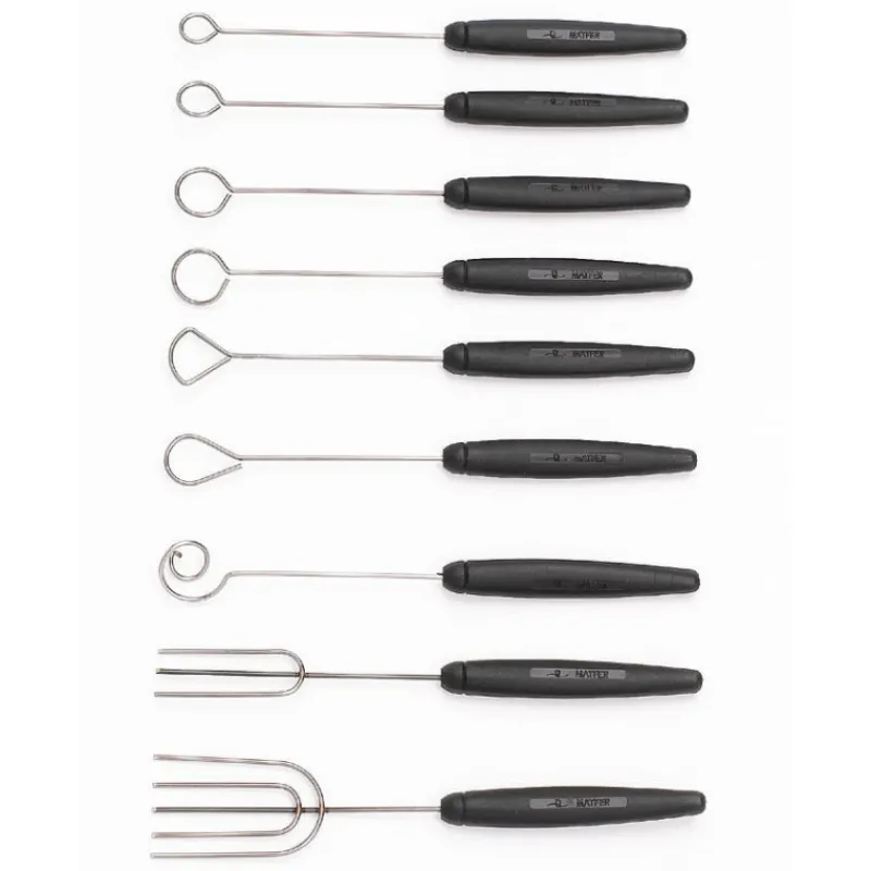 La broche à tremper est utilisé pour tremper des préparations en confiserie ou des fruits dans du chocolat en évitant de laisser des marques. La broche à tremper permet de réaliser un enrobage chocolat parfait et sans trace.