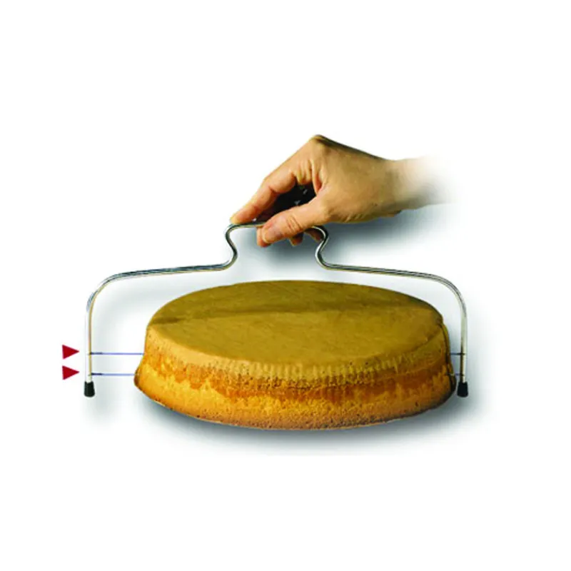 La double lyre à génoise permet de couper la génoise en 3 couches parfaitement régulières, en toute sécurité. L’écartement des fils est réglable.