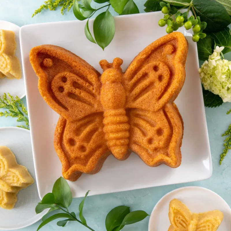 Virevoltant de fleur en fleur pendant le printemps et l’été, le papillon est un symbole de transformation. À l’image de cet insecte, métamorphosez vos desserts en œuvres gourmandes grâce au moule à gâteau papillon Nordic Ware.
