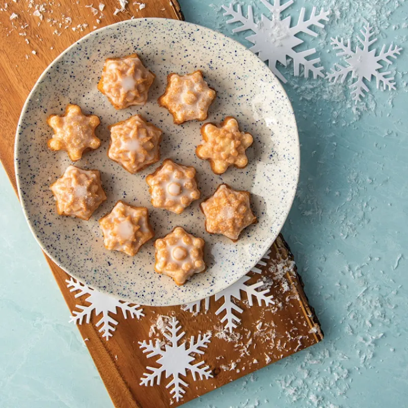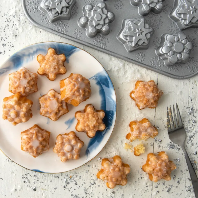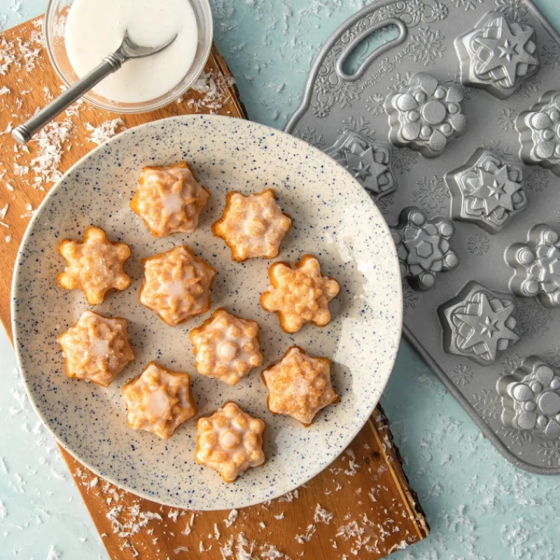 Faites tomber la neige à gros flocons sur votre table de fête en confectionnant des petits gâteaux en forme de flocons de neige. Nordic Ware vous propose un moule à gâteaux de premier choix qui vous accompagnera des années durant.