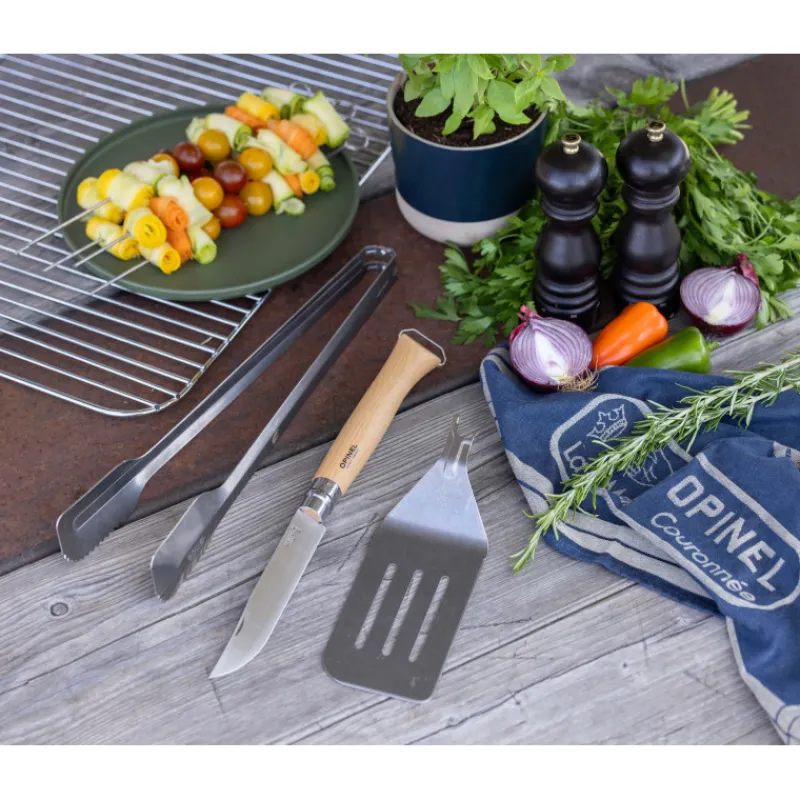 Savourez des repas conviviaux en extérieur grâce au set pour barbecue Opinel et ses ustensiles de qualité supérieure.